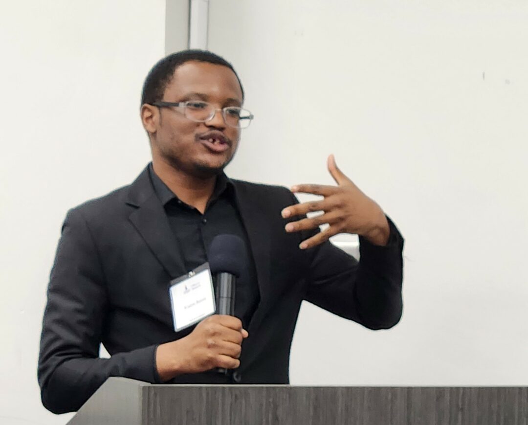 Graduate Student, Wisdom Benson, presenting the talk titled “A Novel Approach to Quantum Decoherence in Spin Qubits Using ZnO Piezoelectric Quantum Dots” at the Howard University Research Month 2025 Research Symposium in Washington, D.C. (April 24th-25th, 2025)