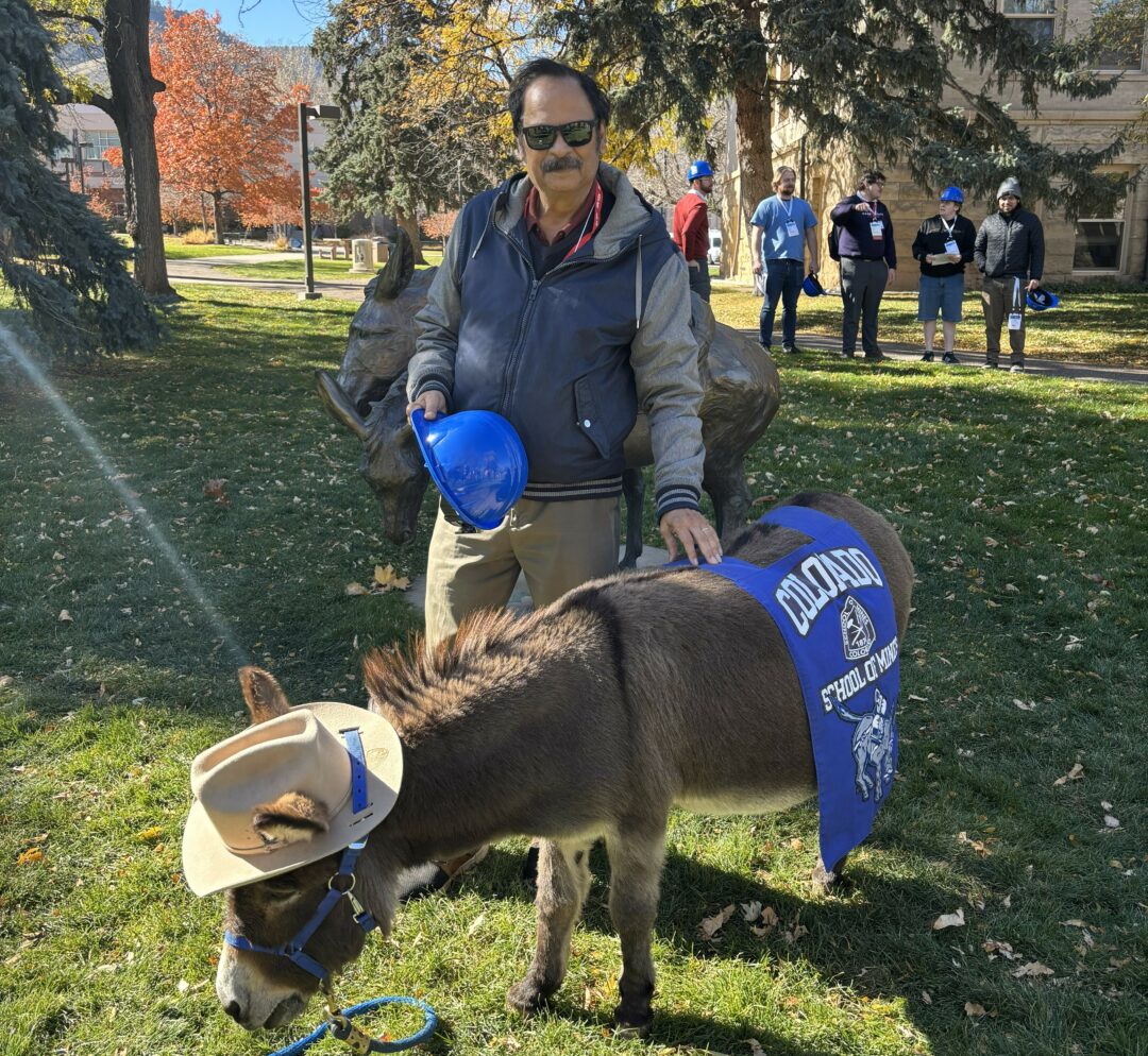 Dr. Misra with the Colorado School of Mines Mascot at the SPS Congress Fall 2025